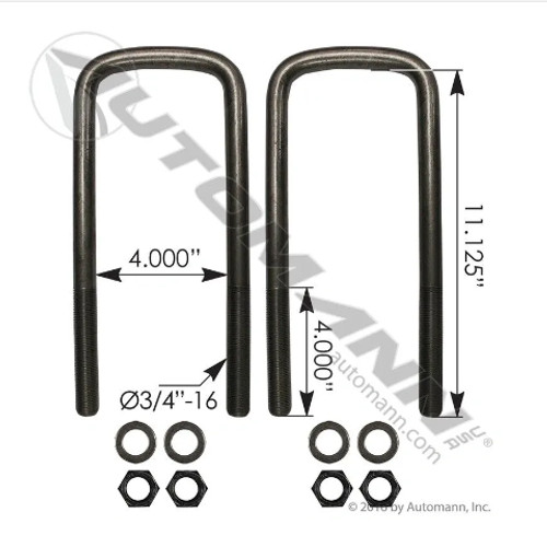 Automann AUBK8854-111 U-Bolt Kit, 3/4 X 4 X 11-1/8in, Semi Round