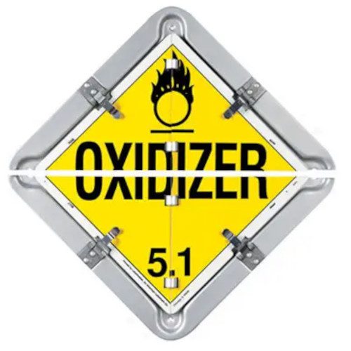 • This Split Frame Spacemaster System includes 8 placard panels in a single frame: Dangerous Flammable Gas 2 Poison 6 Corrosive 8 Flammable Liquid 3 Oxidizer 5.1 Radioactive 7 Non-Flammable Gas 2 Blank Placards meet DOT specifications for transporting hazardous materials. Changing DOT placards when your load changes is as easy as the flip of a panel. Spacemaster eliminates the hassle and expense of replacing placards, so DOT compliance is virtually at your fingertips. Spacemaster frames are constructed of corrosion-resistant, fully formed rigid aluminum that provides superior durability, even under the toughest road conditions.  Panels lock in place with 4 double-riveted stainless steel pressure fasteners. Legends are silkscreened with UV inks to retard fading, chipping or peeling. Spacemaster Split Frame, 8-Legend Flip Placard System for Trailers is sold per each.