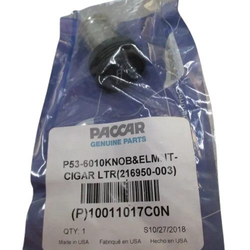 The PACCAR 10011017C0N Cigarette Knob Element is a durable and reliable replacement component designed to seamlessly fit PACCAR vehicles, ensuring functionality and convenience for drivers.