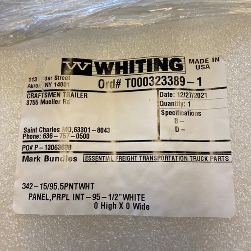 Whiting 342 Door Panel, Intermediate, Premium Dry Freight (15" x 95.5")(Painted White)